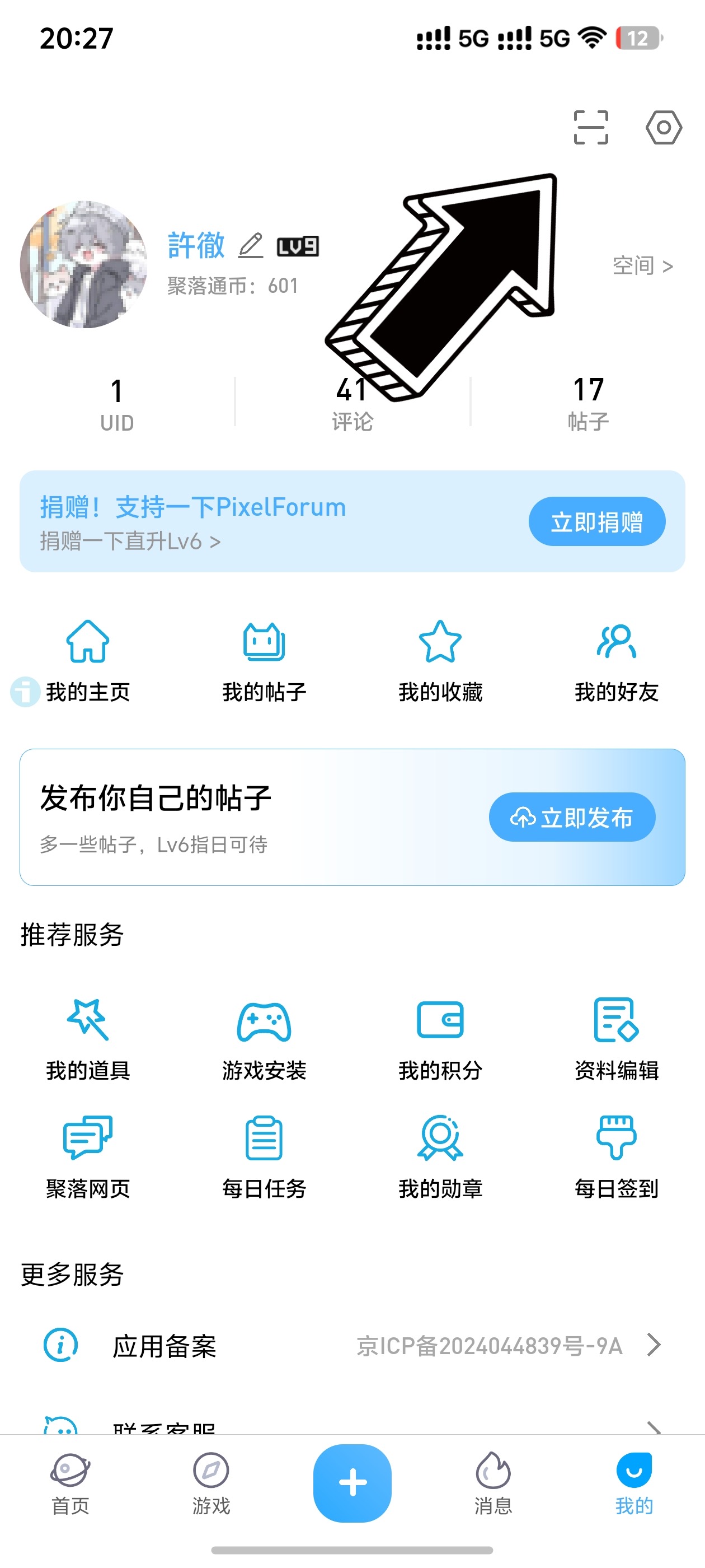 打开像素聚落,在我的-右上角中选择 扫一扫
